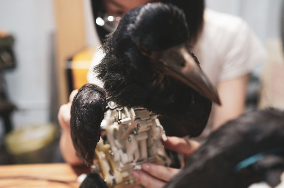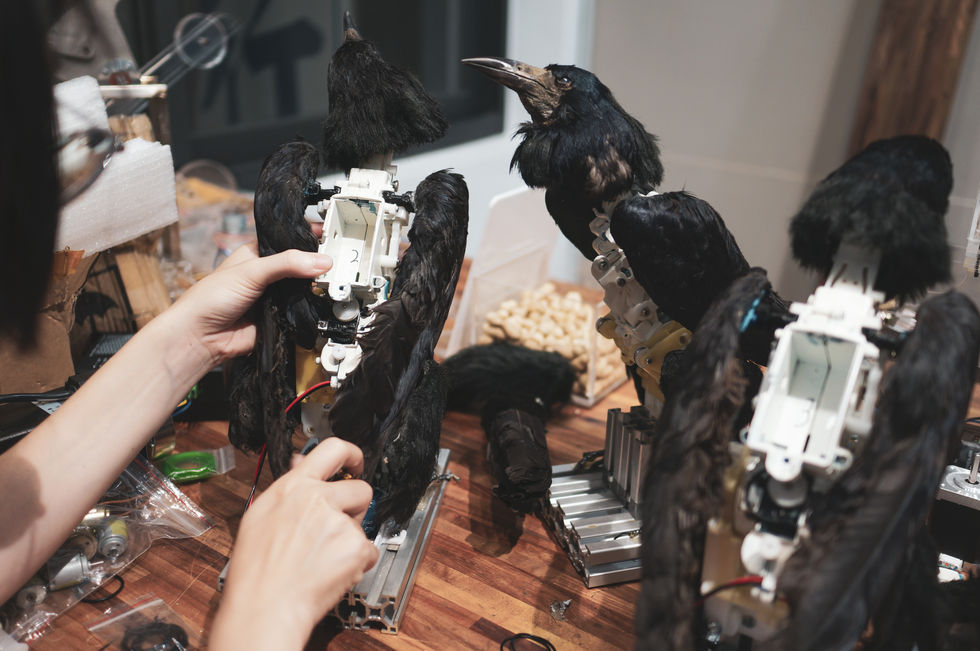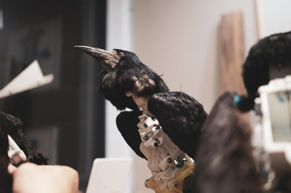 藝術品修復案為仿生物機械的烏鴉裝置,穀米機工更新了電系、馬達與修復傳動機構,並選擇轉速能擬仿生物動作的馬達。此機械裝置其實是以自然死亡或道路意外的鳥類再製而成,在死亡的軀體中加裝了電路板程式控制,看似復生的表象,也以當代科技模糊了生命的邊界,反映藝術家的創作意志。